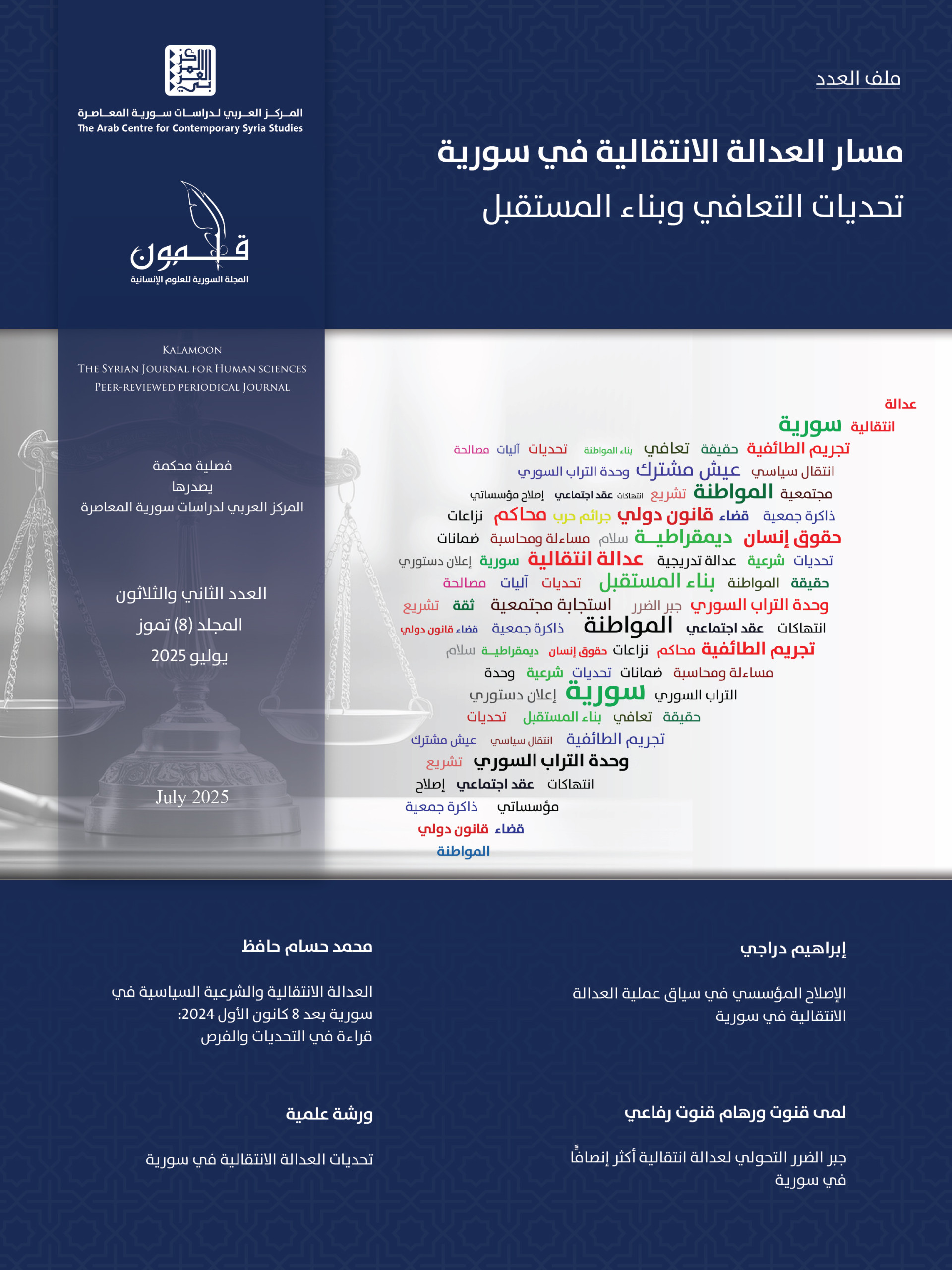 ينظّم المركز العربي لدراسات سورية المعاصرة أعمال المنتدى السنوي للدراسات السورية المعاصرة (الدورة الخامسة)، يومي 30 و31 آب/ أغسطس 2025، في العاصمة السورية دمشق.يتضمّن المنتدى مجموعة من الأوراق المحكّمة التي تتناول قضايا الحوكمة وإعادة الإعمار،...