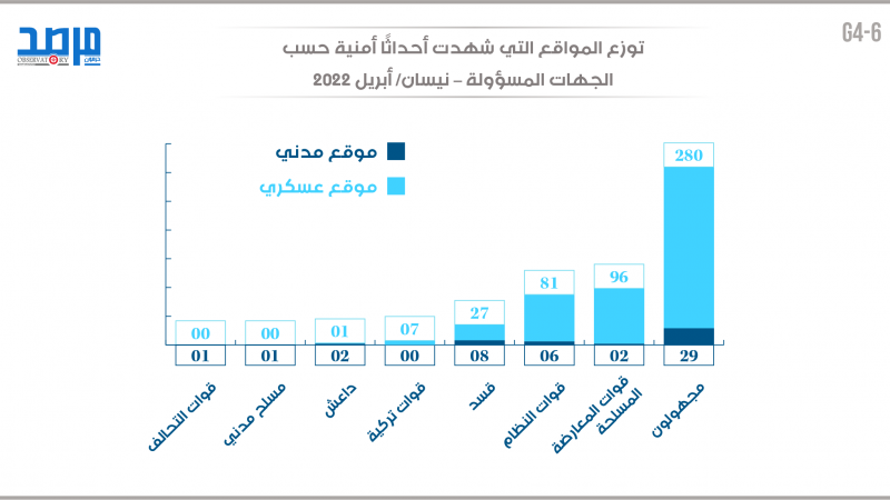 نيسان 2022.. توزع المواقع التي شهدت أحداثًا أمنية حسب الجهات المسؤولة