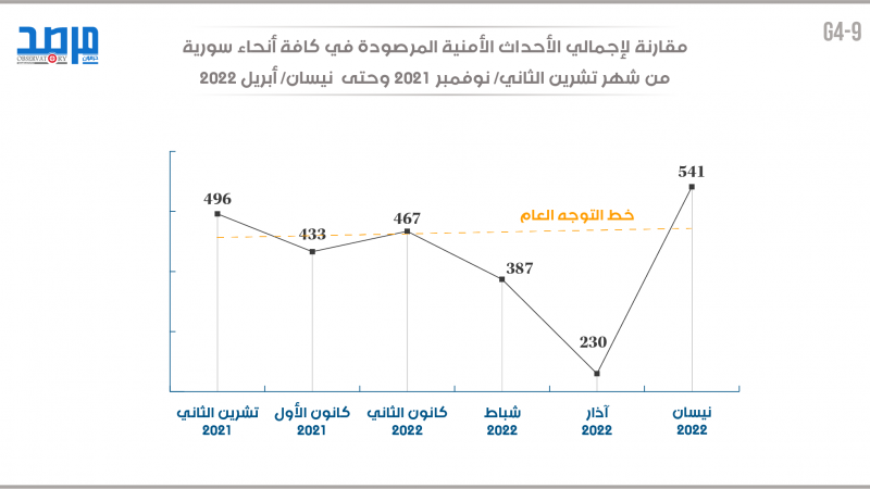 نيسان 2022.. مقارنة لإجمالي الأحداث الأمنية المرصودة في كافة أنحاء سورية
