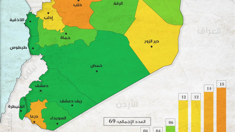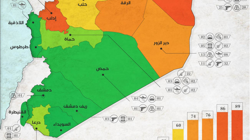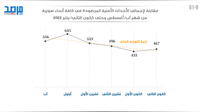 مقارنة لإجمالي الأحداث الأمنية المرصودة في كافة أنحاء سورية