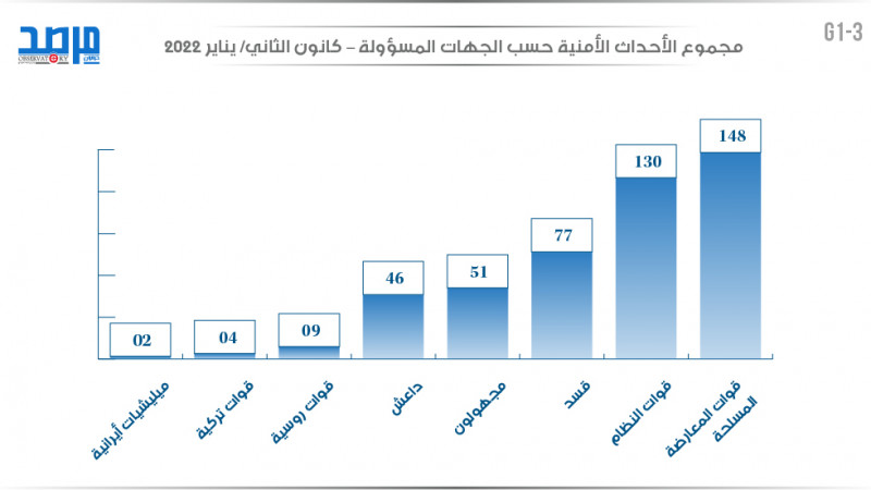 مجموع الأحداث الأمنية حسب الجهات المسؤولة (كانون الثاني 2022)