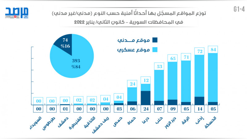 توزع الضحايا المدنيين في سورية (كانون الثاني 2022)