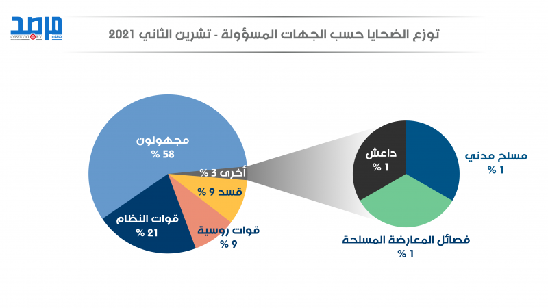 تشرين الثاني 2021.. توزع الضحايا حسب الجهات المسؤولة في سورية