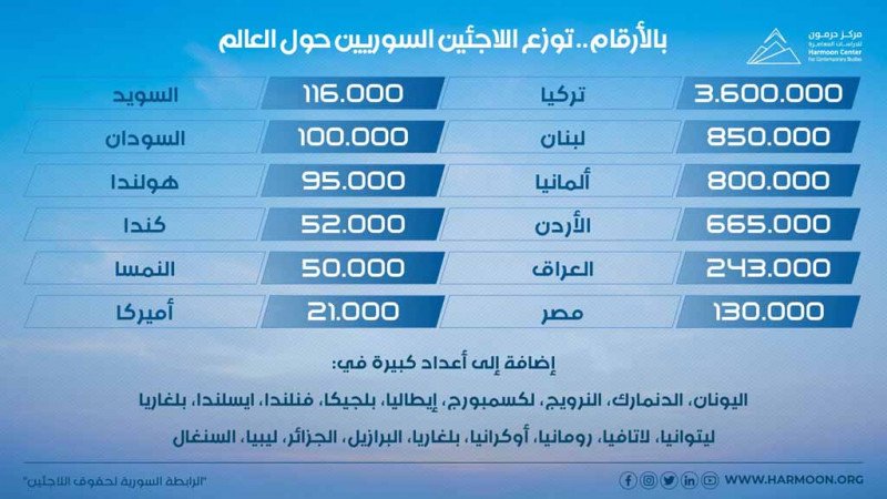توزع اللاجئين السوريين حول العالم