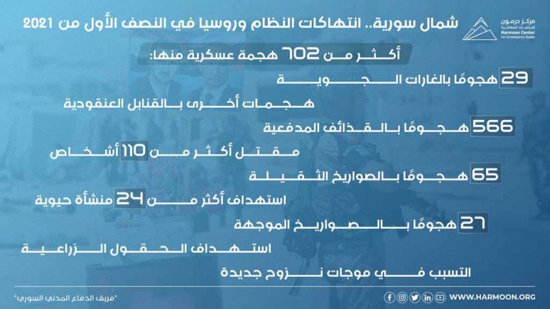 شمال سورية.. انتهاكات النظام وروسيا في النصف الأول من 2021