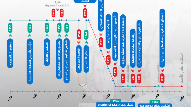 مخطط زمني يوضح تغيرات نشاط المجتمع المدني السوري