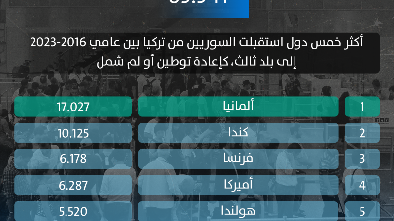عدد السوريين الذين غادروا تركيا بشكل نظامي بين عامي 2016-2023 إلى بلد ثالث كإعادة توطين أو لم شمل