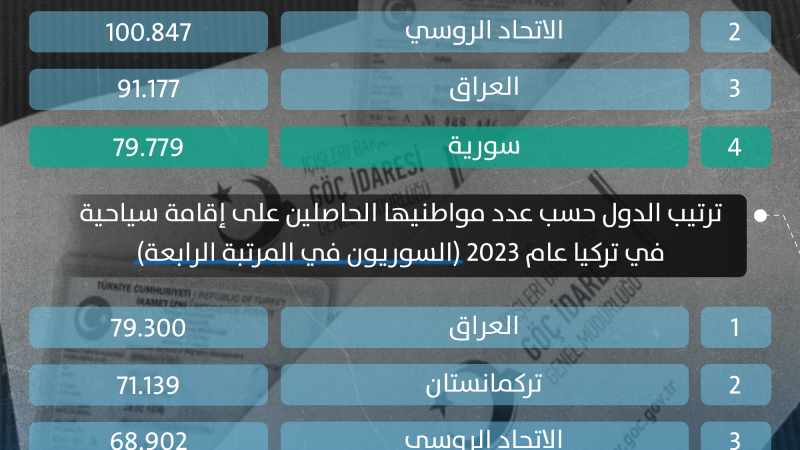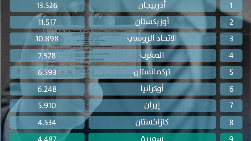 ترتيب الدول حسب عدد مواطنيها الحاصلين على إذن إقامة في تركيا عام 2023