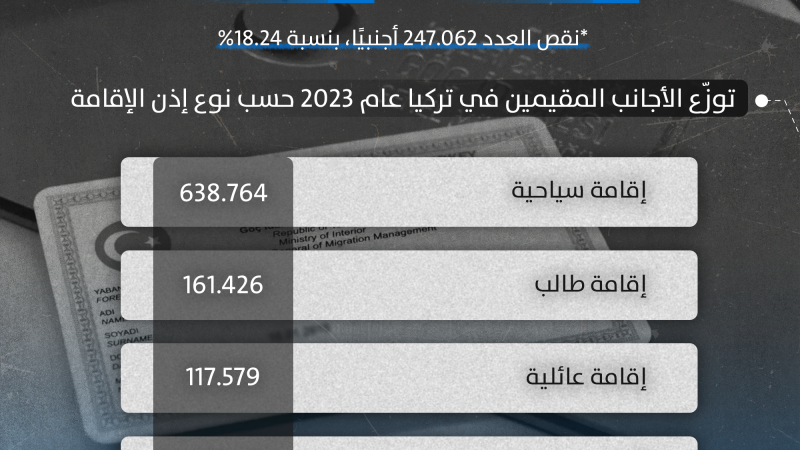 عدد الأجانب الحاصلين على إذن إقامة في تركيا