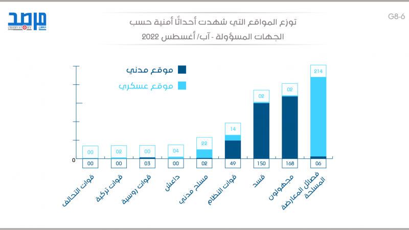 آب 2022.. توزع المواقع التي شهدت أحداثًا أمنية حسب الجهات المسؤولة