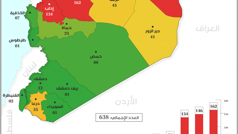 خريطة توزع الضحايا المدنيين في سورية (آب 2022)