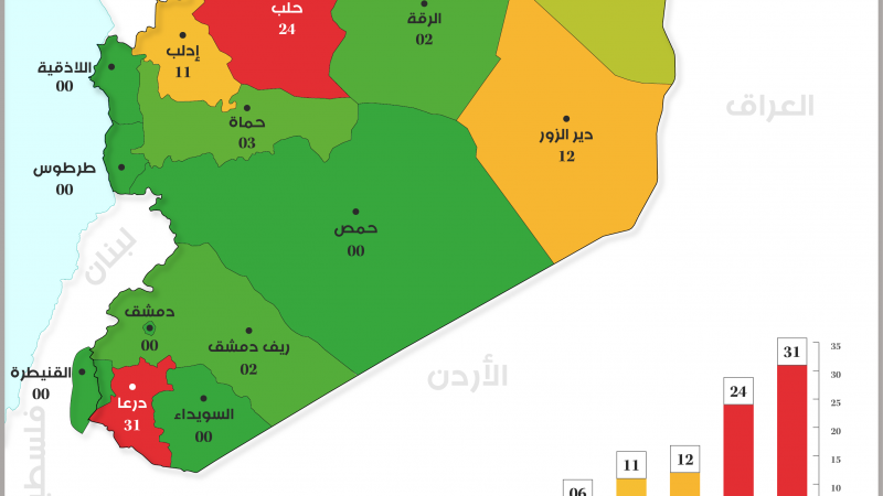 خريطة توزع إجمالي الأحداث الأمنية في المحافظات السورية (آب 2022)