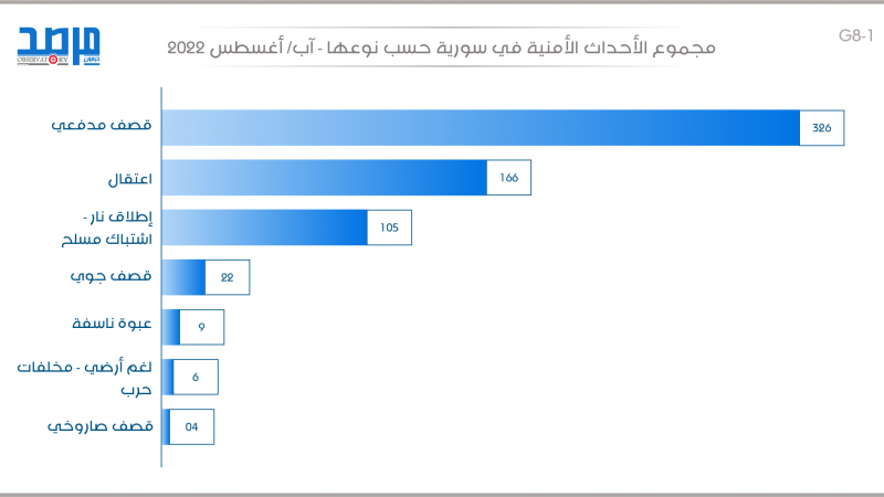 مجموع الأحداث الأمنية في سورية حسب نوعها (آب 2022)