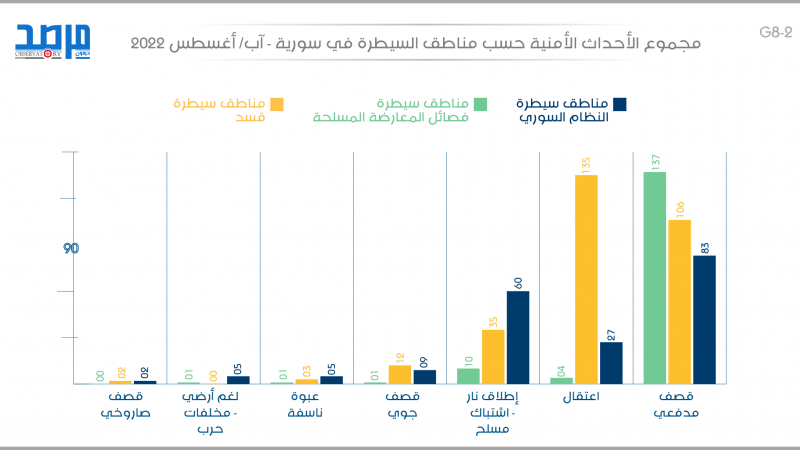 آب 2022.. مجموع الأحداث الأمنية حسب مناطق السيطرة في سورية
