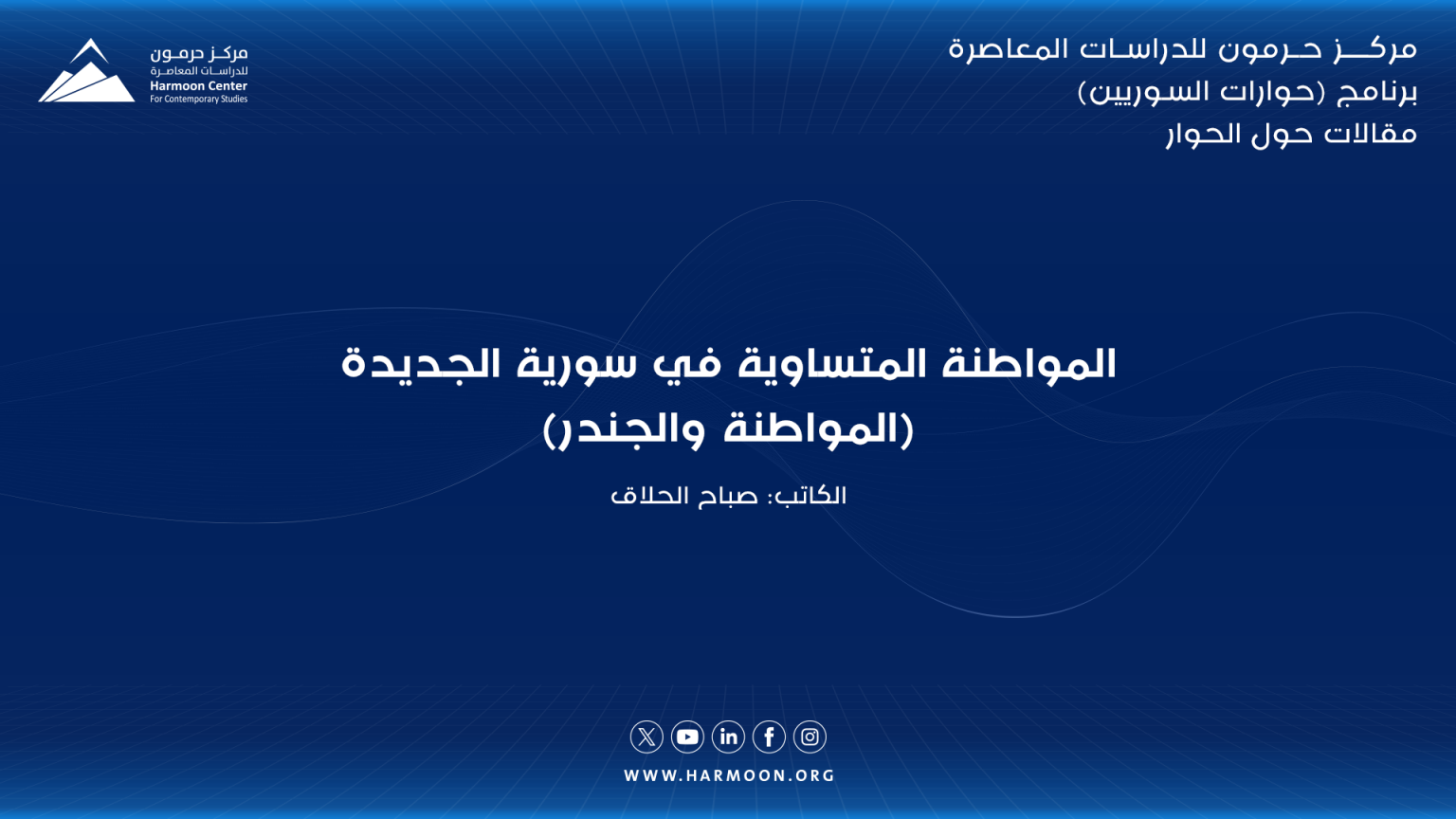 “المواطنة المستوفية لمبادئها وقيمها هي حجر الأساس في بناء وتعزيز شعور الفرد بانتمائه إلى وطنه، وفي بناء الهوية الوطنية الجامعة، وهي الإطار الأمثل لمعالجة قضايا التنوع الثقافي القومي والديني والجنسي والمناطقي في سورية، فضلًا عن كونها العنصر الأهم في معالجة هذه الحالة المتقدمة من التمزق المجتمعي التي وصلنا إليها.
