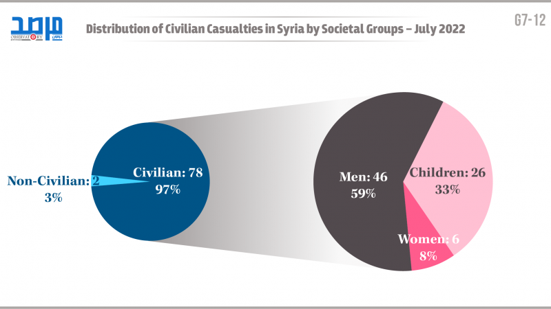 Distribution of civilian casualties in syria by societal Groups- july 2022