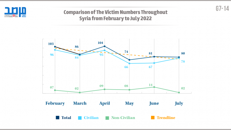 Comparison of the victim numbers throughout syria from February to july 2022