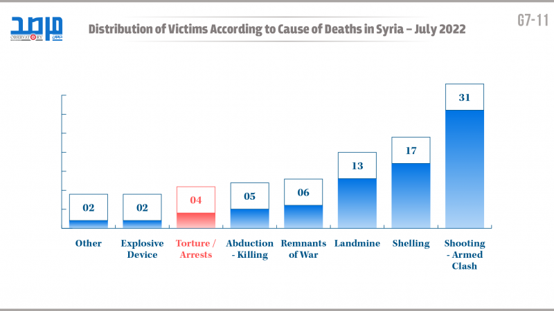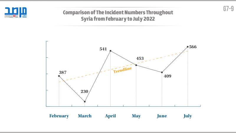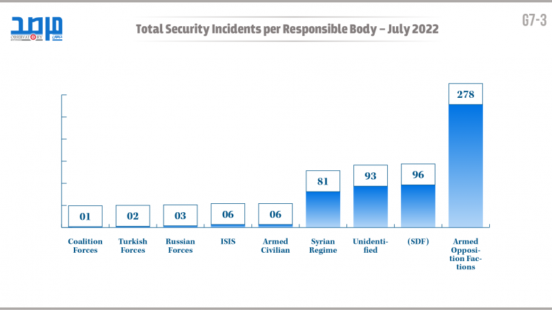 Geographic Distribution of the Security incidents in syrian Governorates- july 2022