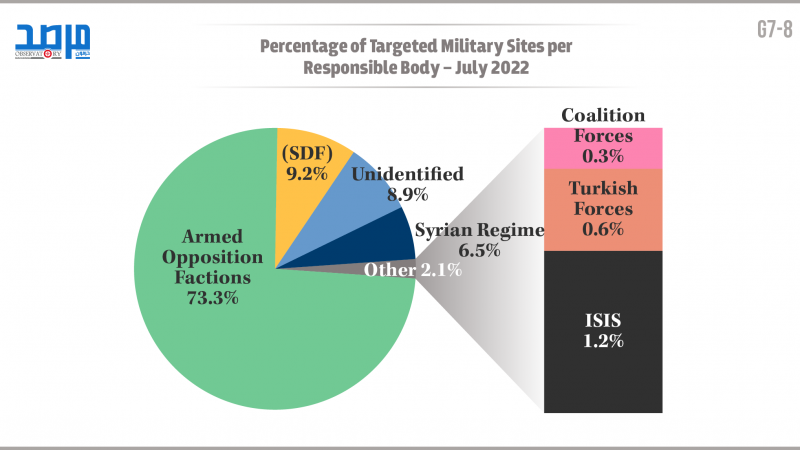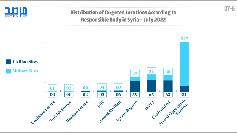 Distribution of Targeted Locations According to responsible Body in syria- july 2022