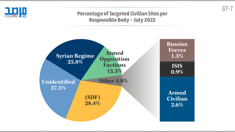Percentage of Targeted Civilian Sites Per Responsible Body- july 2022