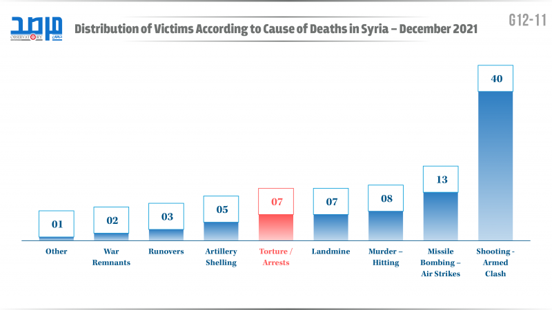 Distribution of victims According to cause of deathes in syria