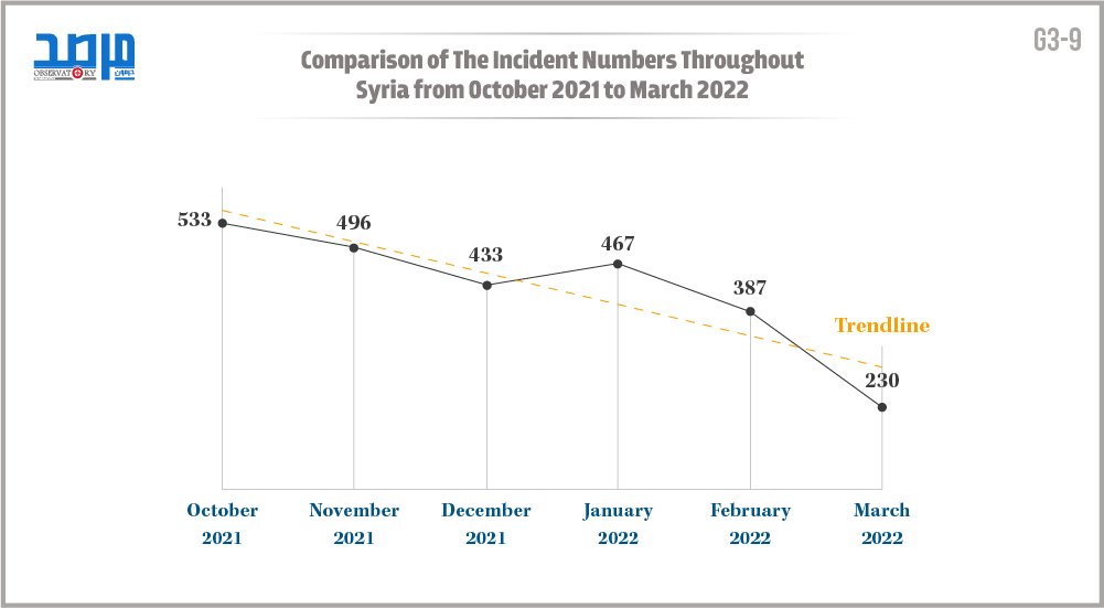 A total number of 80 Israeli strikes on Syria were recorded throughout March 2025, targeting diverse military sites across five key Syrian provinces. The trend marks a notable escalation in the intensity of strikes during the month, with several concentrated strikes carried out on the same day, particularly in Homs and Rural Damascus. These concentrated and repeated barrages point to…