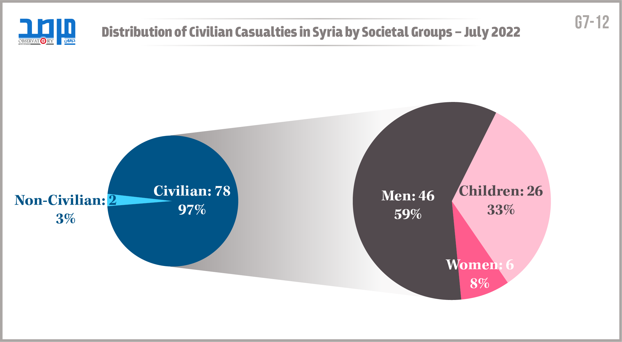 Distribution of civilian casualties in syria by societal Groups- july 2022