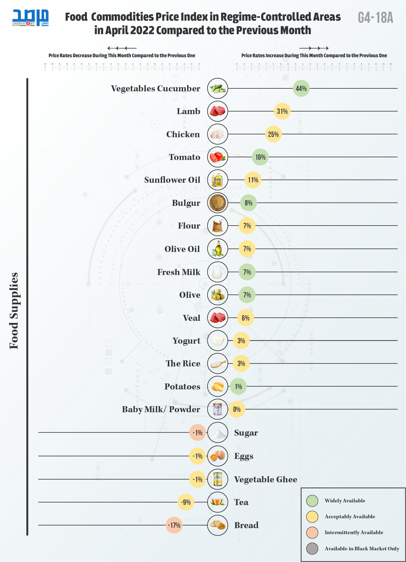 Food commodities price index in Regime- controlleed Areas in April 2022