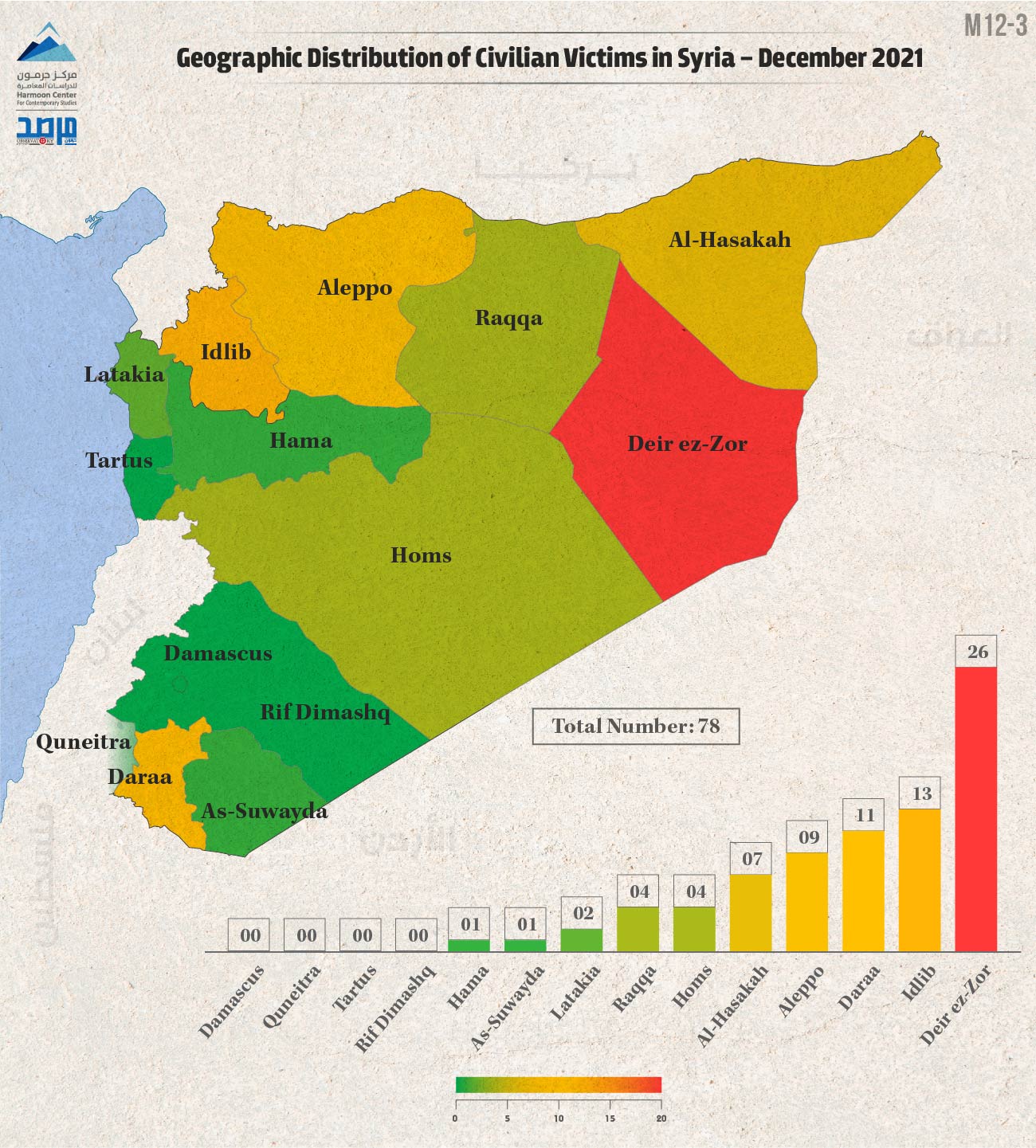 A total number of 80 Israeli strikes on Syria were recorded throughout March 2025, targeting diverse military sites across five key Syrian provinces. The trend marks a notable escalation in the intensity of strikes during the month, with several concentrated strikes carried out on the same day, particularly in Homs and Rural Damascus. These concentrated and repeated barrages point to…