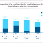 A total number of 80 Israeli strikes on Syria were recorded throughout March 2025, targeting diverse military sites across five key Syrian provinces. The trend marks a notable escalation in the intensity of strikes during the month, with several concentrated strikes carried out on the same day, particularly in Homs and Rural Damascus. These concentrated and repeated barrages point to…