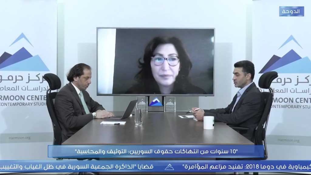 استضاف مركز حرمون للدراسات المعاصرة، عبر البث المباشر، يوم الثلاثاء 9 شباط/ فبراير 2021، في ندوة بعنوان “10 سنوات من انتهاكات حقوق السوريين: التوثيق والمحاسبة”، فضل عبد الغني رئيس “الشبكة السورية لحقوق الإنسان”، وريم الكسيري مديرة “المنظمة الدولية للمعتقلات”، وأدار الندوة عمر إدلبي مدير فرع الدوحة لمركز حرمون.