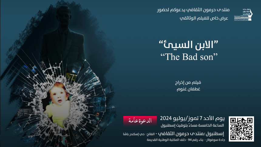 ينظّم منتدى حرمون الثقافي في مدينة إسطنبول، يوم الأحد 7 تموز/ يوليو 2024، الساعة الخامسة مساءً، عرضًا خاصًا للفيلم الوثائقي الطويل “الابن السيئ”، للمخرج غطفان غنوم. ويعقب العرض جلسة حوارية مفتوحة مع مخرج الفيلم. العنوان: منتدى حرمون الثقافي – الفاتح – إسطنبول – حي إسكندر باشا – جادة سوفولار – رقم البناء 94 (خلف المكتبة الوطنية القديمة). الدعوة عامة