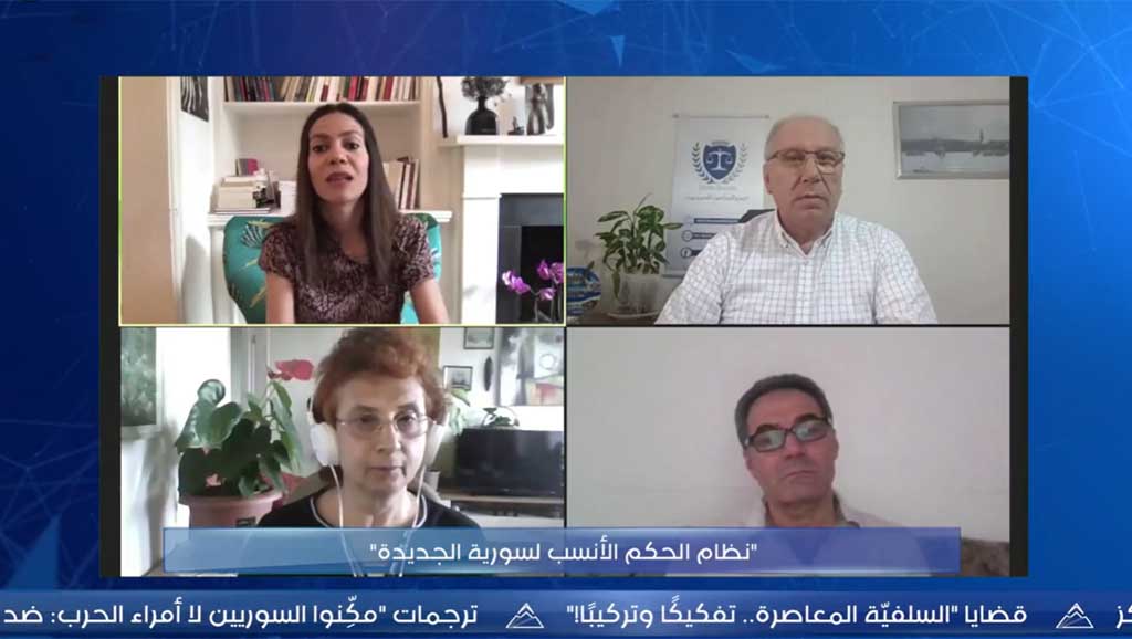 عقد مركز حرمون ندوة بعنوان “نظام الحكم الأنسب لسورية الجديدة”، شارك فيها كلّ من منى أسعد، غزوان قرنفل، وعبد الله كدو.
