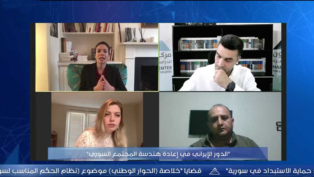 عقد مركز حرمون ندوة بعنوان "الدور الإيراني في إعادة هندسة المجتمع السوري“، شارك فيها رهف الدغلي، ضياء قدور، وعمر إدلبي.