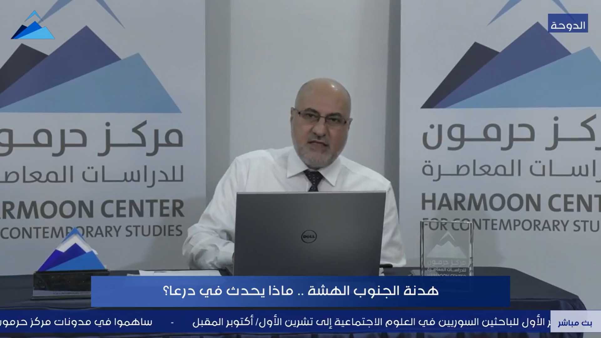 أقام مركز حرمون للدراسات المعاصرة، الثلاثاء 19 أيار/ مايو 2020، ندوة بعنوان (هدنة الجنوب الهشة… ماذا يحدث في درعا؟)، حاضر فيها الناشط السياسي نصر أبو نبوت، وأدارها الإعلامي في قناة الجزيرة محمود الزيبق.