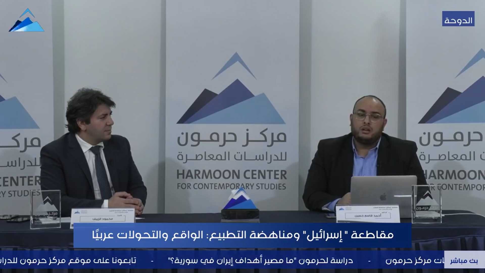 أقام مركز حرمون للدراسات المعاصرة، في فرع الدوحة، الثلاثاء 12 أيار/ مايو 2020، محاضرة بعنوان (مقاطعة إسرائيل ومناهضة التطبيع: الواقع والتحولات عربيًا)، حاضر فيها د. أحمد قاسم حسين، الباحث في المركز العربي للأبحاث ودراسة السياسات، مدير تحرير دورية سياسات عربية، وأدارها محمود الزيبق، الإعلامي في قناة الجزيرة.