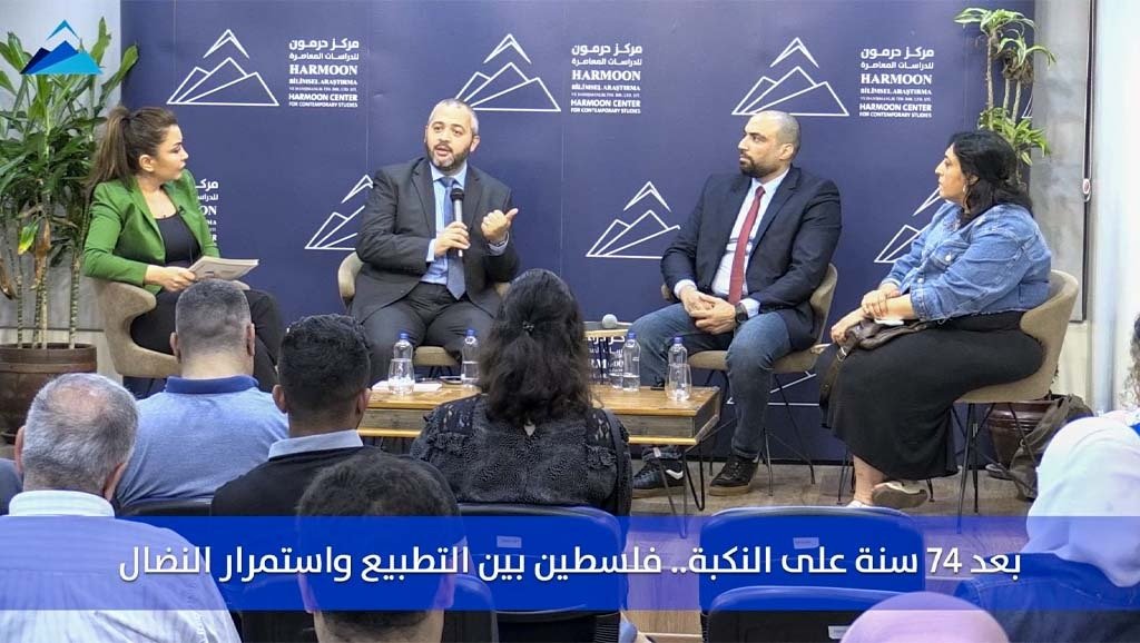 نظّم مركز حرمون للدراسات المعاصرة، ندوة بعنوان “بعد 74 سنة على النكبة.. فلسطين بين التطبيع واستمرار النضال”، شارك فيها عبد الله معروف، أستاذ مساعد بجامعة 29 مايو في إسطنبول، وأستاذ دراسات بيت المقدس، وبيسان عدوان: كاتبة وباحثة فلسطينية، ومحمود زغموت: صحفي وباحث فلسطيني والمدير التنفيذي لمجموعة العمل من أجل فلسطينيي سورية، وأدارتها أسماء صائب أفندي، مدير منتدى حرمون الثقافي في إسطنبول.