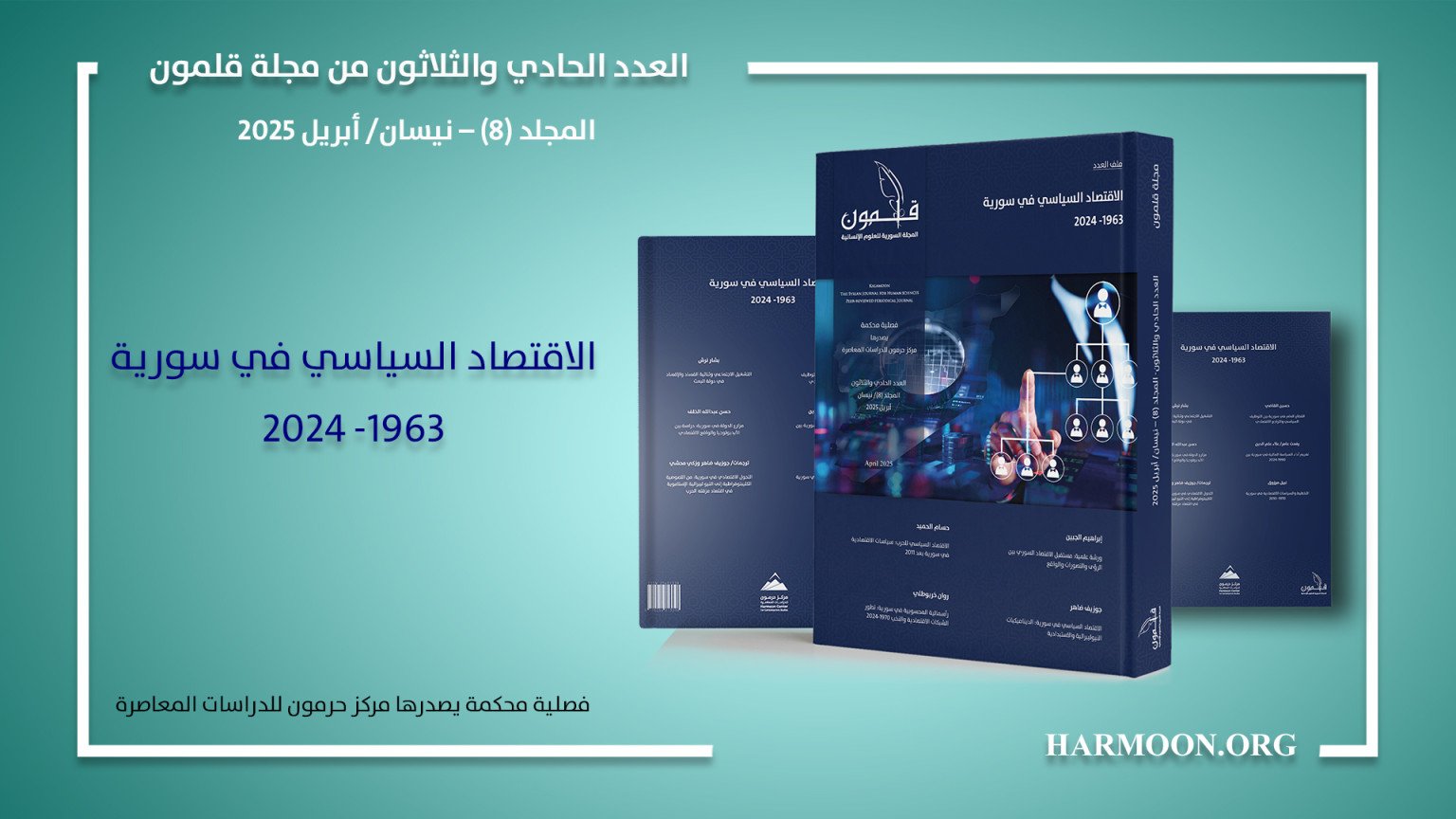 صدر العدد الحادي والثلاثون من مجلة قلمون، وملفه الرئيس (الاقتصاد السياسي في سورية 1963- 2024)، ويتزامن صدوره مع باكورة رفع العقوبات الاقتصادية عن سورية، وبدء التفكير في مستقبل الاقتصاد السوري في المرحلة القادمة، والتحديات الكبرى التي يمر بها.