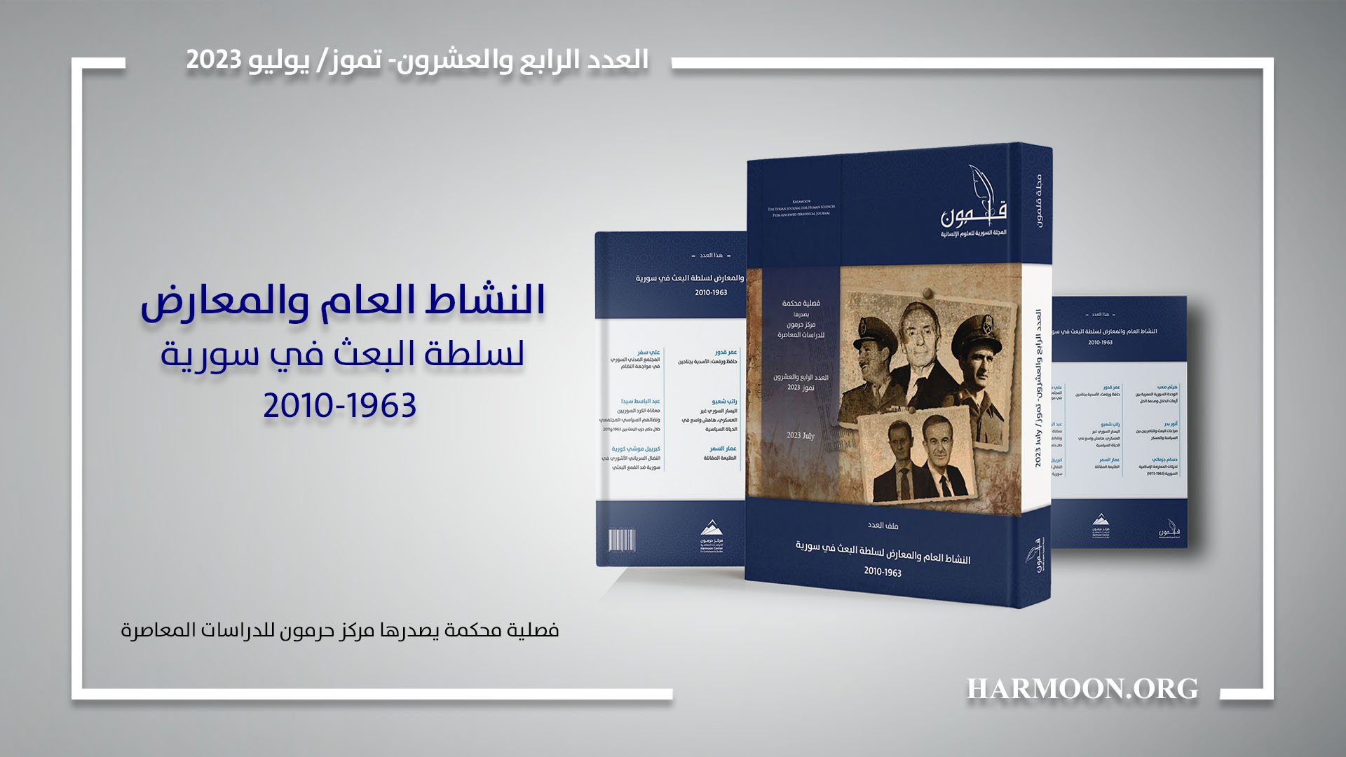يذكر أن مجلة قلمون التي يصدرها مركز حرمون للدراسات المعاصرة ما زالت تستقبل إسهامات الكتاب في ملف العدد الخامس والعشرين منها تحت عنوان “دولة العسكر الشمولية (سورية أنموذجًا 1963- 2010)”، وترحب دائمًا بالدراسات التي تغني أبواب المجلة الأخرى.