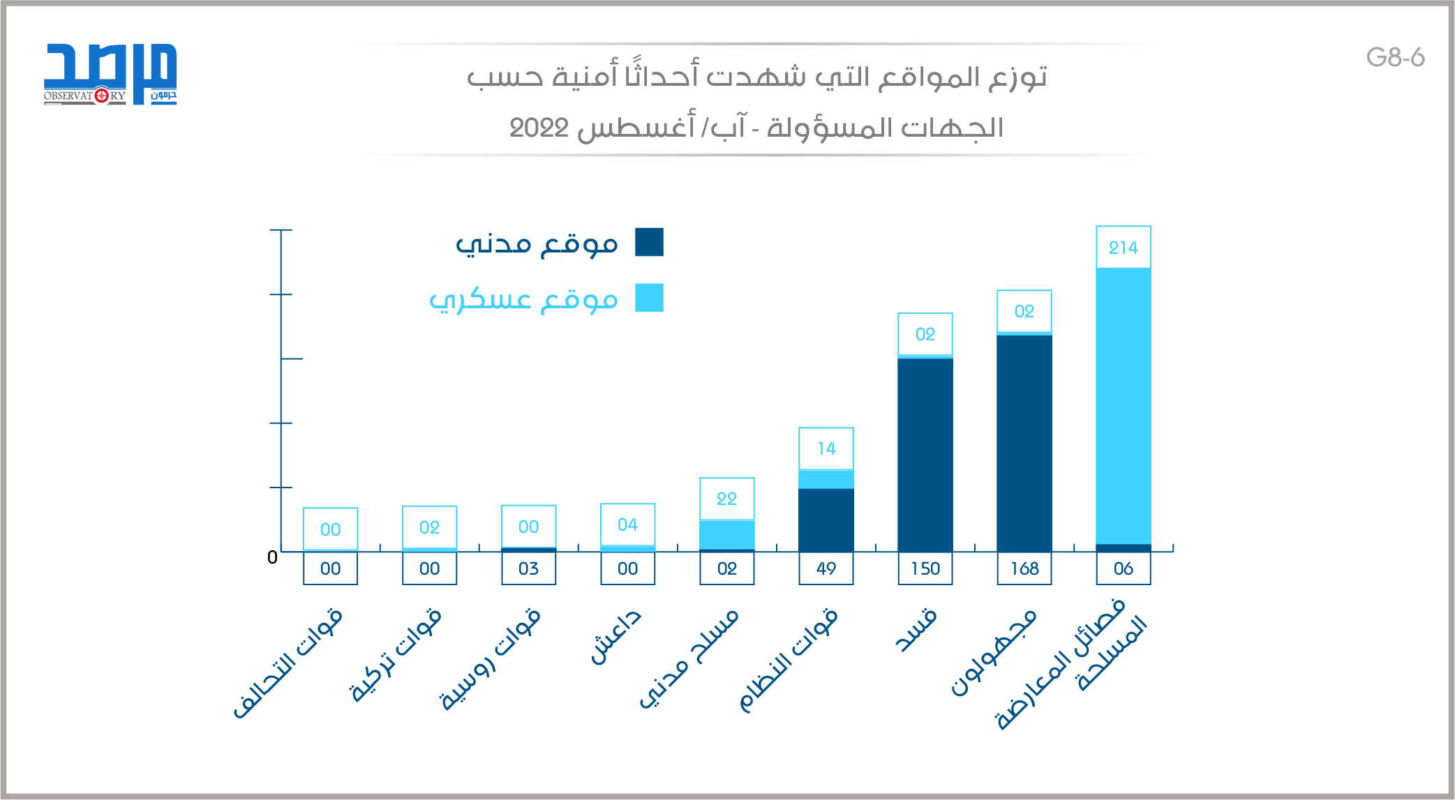 آب 2022.. توزع المواقع التي شهدت أحداثًا أمنية حسب الجهات المسؤولة