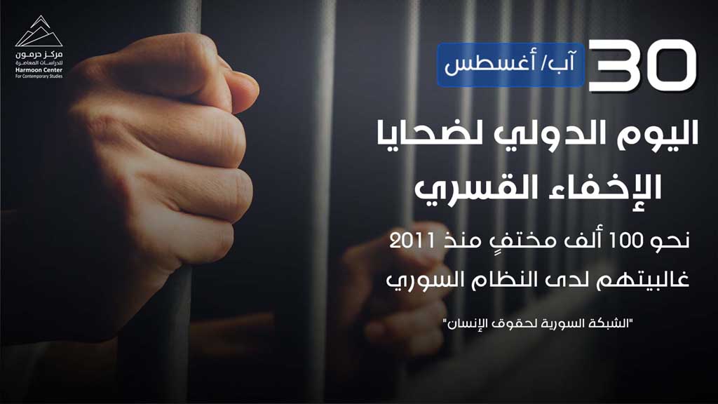 اليوم الدولي لضحايا الإخفاء القسري نشر في 30 آب/أغسطس ,2021 مشاركة مشاركة نحو 100 ألف مختفٍ منذ 2021 غالبيتهم لدى النظام السوري المصدر| الشبكة السورية لحقوق الإنسان مشاركة المقال Facebook Twitter Copy Link Print مشاركة مقالات أخرى للكاتب شرعنة عنف الدولة في سورية أزمة اللاجئين السوريين وتهديدات الأمن العالمي (دراسة حالة ألمانيا) تصعيد أزمة اللاجئين السوريين في لبنان: الدوافع والمآلات اترك تعليقا اترك تعليقاً إلغاء الردلن يتم نشر عنوان بريدك الإلكتروني. الحقول الإلزامية مشار إليها بـ *التعليق * الاسم * البريد الإلكتروني * احفظ اسمي، بريدي الإلكتروني، والموقع الإلكتروني في هذا المتصفح لاستخدامها المرة المقبلة في تعليقي. المقال السابق هيثم حسين: نظام الأسد أنتج صورة وطن مأزوم وبَلور هويّات ضيّقة على مقاسه المقال التالي اغتيال المرأة بين الدين والسياسة