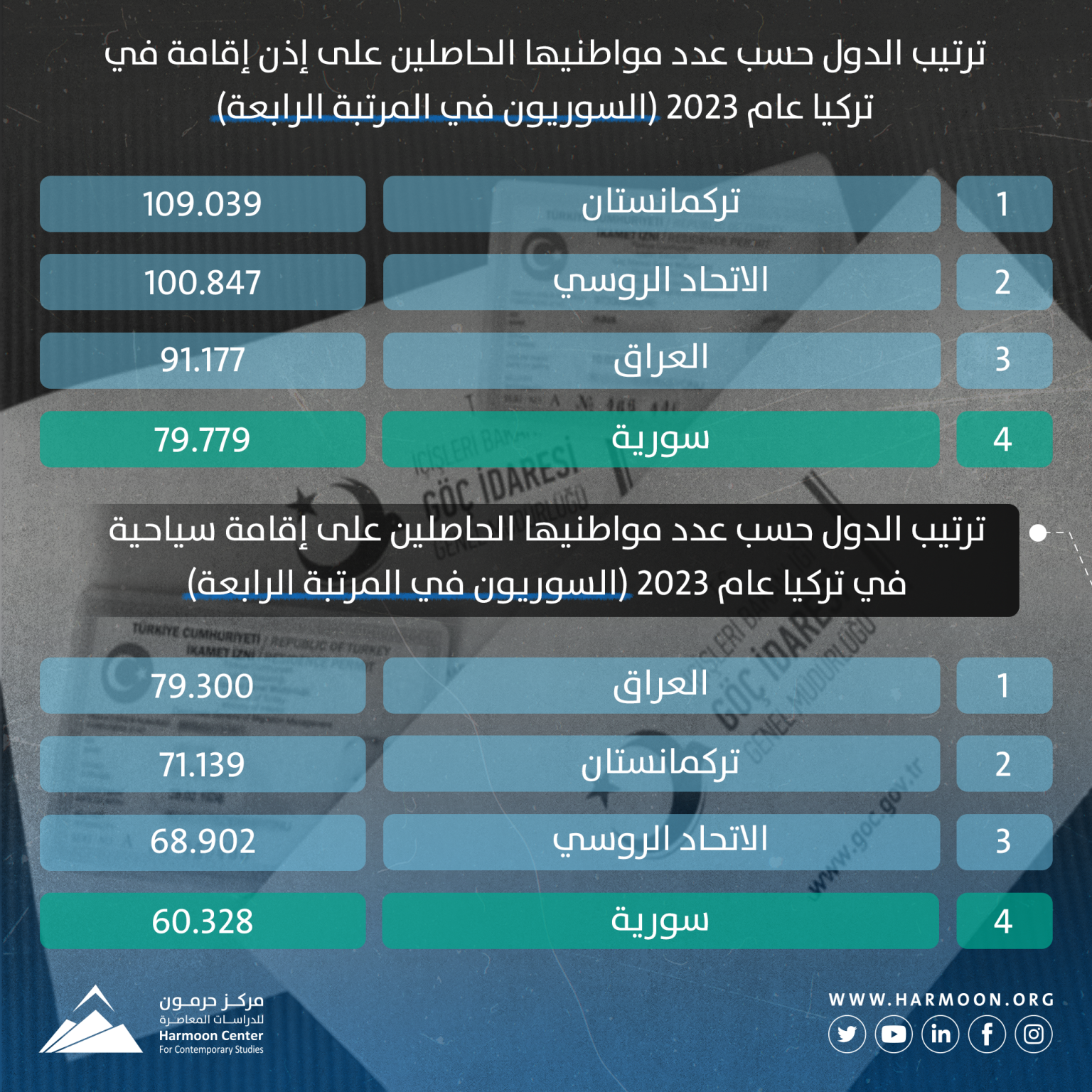 ترتيب الدول حسب عدد مواطنيها الحاصلين على إذن إقامة في تركيا عام 2023