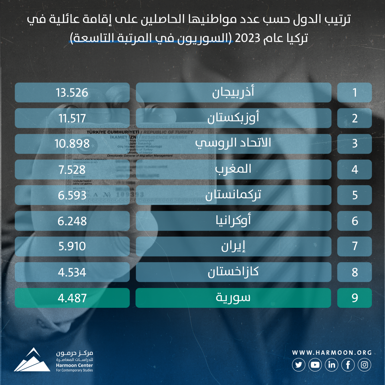ترتيب الدول حسب عدد مواطنيها الحاصلين على إقامة عائلية في تركيا عام 2023