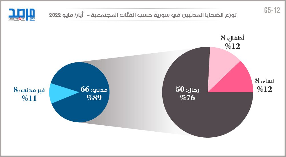 توزع الضحايا المدنيين في سورية حسب الفئات المجتمعية (أيار 2022) نشر في 2 تموز/يوليو ,2022 مشاركة مشاركة مشاركة المقال Facebook Twitter Copy Link Print مشاركة مقالات أخرى للكاتب شرعنة عنف الدولة في سورية أزمة اللاجئين السوريين وتهديدات الأمن العالمي (دراسة حالة ألمانيا) تصعيد أزمة اللاجئين السوريين في لبنان: الدوافع والمآلات اترك تعليقا اترك تعليقاً إلغاء الردلن يتم نشر عنوان بريدك الإلكتروني. الحقول الإلزامية مشار إليها بـ *التعليق * الاسم * البريد الإلكتروني * احفظ اسمي، بريدي الإلكتروني، والموقع الإلكتروني في هذا المتصفح لاستخدامها المرة المقبلة في تعليقي. المقال السابق توزع الضحايا المدنيين في سورية حسب الجهات المسؤولة (أيار 2022) المقال التالي مقارنة لإجمالي الأحداث الأمنية المرصودة في سورية (أيار 2022)