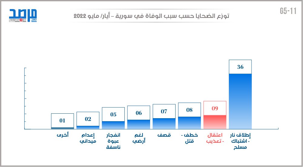 توزع الضحايا حسب سبب الوفاة في سورية (أيار 2022) نشر في 2 تموز/يوليو ,2022 مشاركة مشاركة مشاركة المقال Facebook Twitter Copy Link Print مشاركة مقالات أخرى للكاتب شرعنة عنف الدولة في سورية أزمة اللاجئين السوريين وتهديدات الأمن العالمي (دراسة حالة ألمانيا) تصعيد أزمة اللاجئين السوريين في لبنان: الدوافع والمآلات اترك تعليقا اترك تعليقاً إلغاء الردلن يتم نشر عنوان بريدك الإلكتروني. الحقول الإلزامية مشار إليها بـ *التعليق * الاسم * البريد الإلكتروني * احفظ اسمي، بريدي الإلكتروني، والموقع الإلكتروني في هذا المتصفح لاستخدامها المرة المقبلة في تعليقي. المقال السابق أيار 2022.. مقارنة أعداد المواقع التي شهدت أحداثًا أمنية حسب نوعها المقال التالي توزع الضحايا المدنيين في سورية حسب الجهات المسؤولة (أيار 2022)