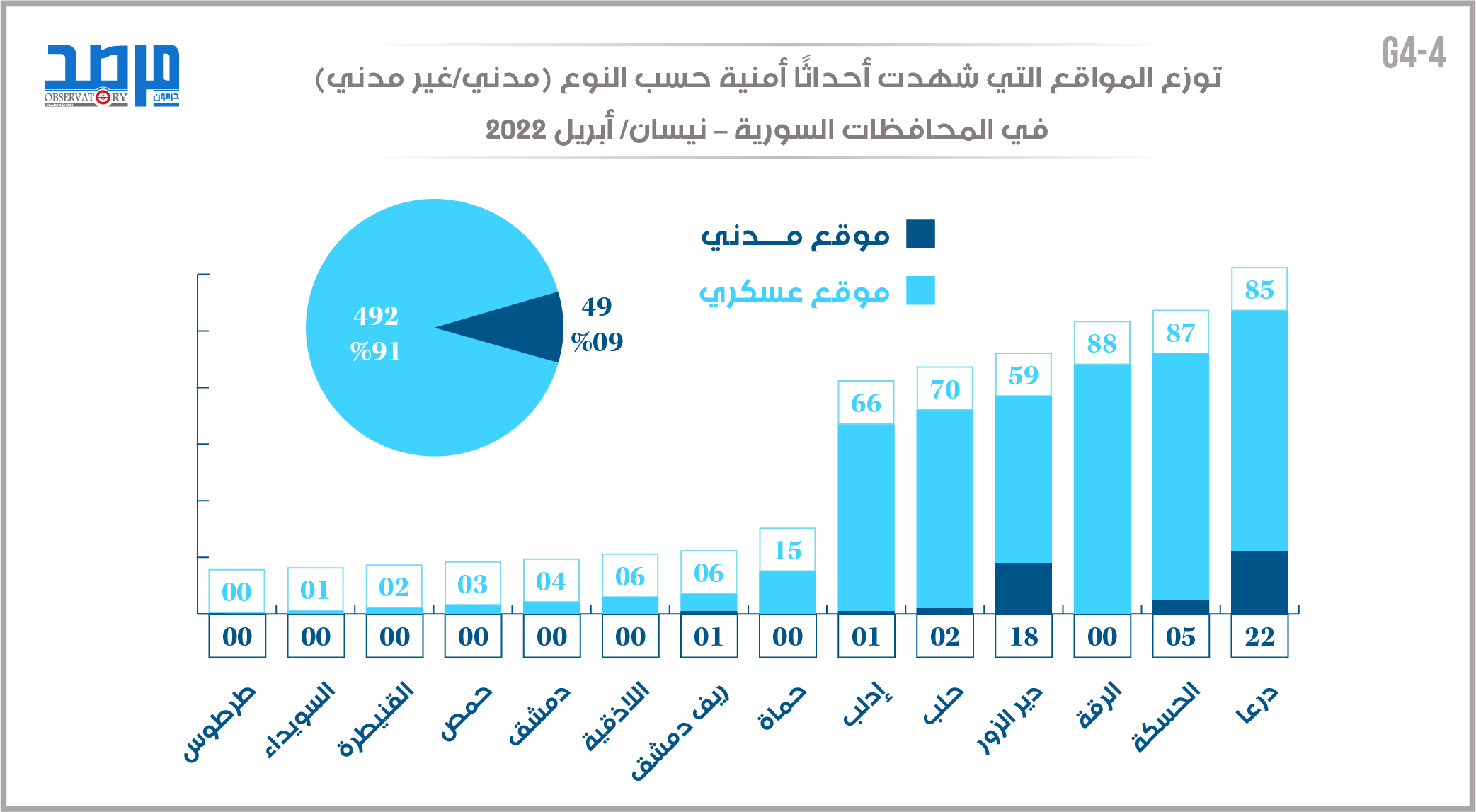 توزع المواقع التي شهدت أحداثًا أمنية حسب النوع (نيسان 2022) نشر في 27 أيار/مايو ,2022 مشاركة مشاركة مشاركة المقال Facebook Twitter Copy Link Print مشاركة مقالات أخرى للكاتب شرعنة عنف الدولة في سورية أزمة اللاجئين السوريين وتهديدات الأمن العالمي (دراسة حالة ألمانيا) تصعيد أزمة اللاجئين السوريين في لبنان: الدوافع والمآلات اترك تعليقا اترك تعليقاً إلغاء الردلن يتم نشر عنوان بريدك الإلكتروني. الحقول الإلزامية مشار إليها بـ *التعليق * الاسم * البريد الإلكتروني * احفظ اسمي، بريدي الإلكتروني، والموقع الإلكتروني في هذا المتصفح لاستخدامها المرة المقبلة في تعليقي. المقال السابق مجموع الأحداث الأمنية حسب الجهات المسؤولة في سورية (نيسان 2022) المقال التالي نيسان 2022.. توزع المواقع التي شهدت أحداثًا أمنية حسب مناطق السيطرة في سورية