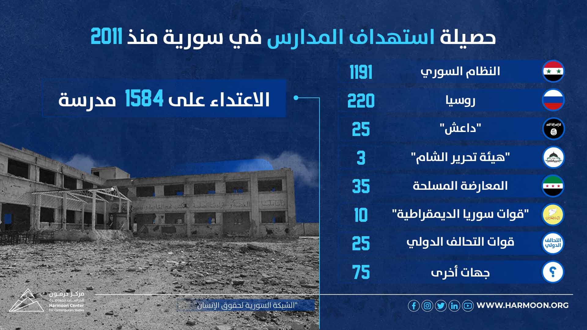 عشر سنوات من الثورة.. حصيلة استهداف المدارس في سورية نشر في 16 آذار/مارس ,2021 مشاركة مشاركة المصدر| الشبكة السورية لحقوق الإنسان مشاركة المقال Facebook Twitter Copy Link Print مشاركة مقالات أخرى للكاتب شرعنة عنف الدولة في سورية أزمة اللاجئين السوريين وتهديدات الأمن العالمي (دراسة حالة ألمانيا) تصعيد أزمة اللاجئين السوريين في لبنان: الدوافع والمآلات اترك تعليقا اترك تعليقاً إلغاء الردلن يتم نشر عنوان بريدك الإلكتروني. الحقول الإلزامية مشار إليها بـ *التعليق * الاسم * البريد الإلكتروني * احفظ اسمي، بريدي الإلكتروني، والموقع الإلكتروني في هذا المتصفح لاستخدامها المرة المقبلة في تعليقي. المقال السابق عشر سنوات من الثورة.. أبرز الانتهاكات بحق المرأة السورية المقال التالي 10 سنوات من الثورة.. الأطفال ضحايا الصراع الدائر منذ 2011