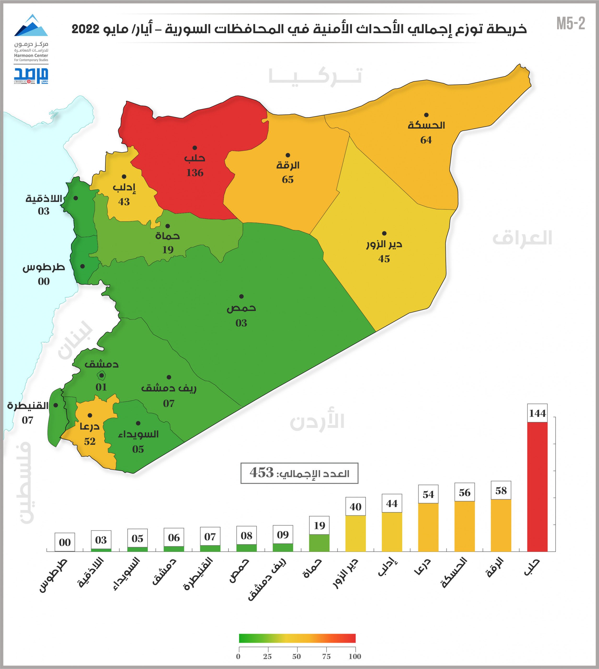 خريطة توزع إجمال الأحداث الأمنية في سورية (أيار 2022) نشر في 2 تموز/يوليو ,2022 مشاركة مشاركة مشاركة المقال Facebook Twitter Copy Link Print مشاركة مقالات أخرى للكاتب شرعنة عنف الدولة في سورية أزمة اللاجئين السوريين وتهديدات الأمن العالمي (دراسة حالة ألمانيا) تصعيد أزمة اللاجئين السوريين في لبنان: الدوافع والمآلات اترك تعليقا اترك تعليقاً إلغاء الردلن يتم نشر عنوان بريدك الإلكتروني. الحقول الإلزامية مشار إليها بـ *التعليق * الاسم * البريد الإلكتروني * احفظ اسمي، بريدي الإلكتروني، والموقع الإلكتروني في هذا المتصفح لاستخدامها المرة المقبلة في تعليقي. المقال السابق مجموع الأحداث الأمنية حسب مناطق السيطرة في سورية (أيار 2022) المقال التالي خريطة توزع الضحايا المدنيين في سورية (أيار 2022)