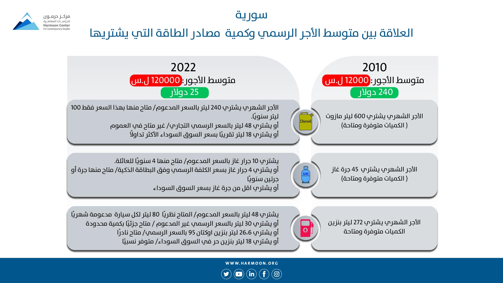 المزيد في دراسة أصدرها مركز حرمون بعنوان انعكاسات شحّ مصادر الطاقة على الأنماط المعيشية والاجتماعية في سورية (مناطق سيطرة النظام): https://bit.ly/3Ci7OWW