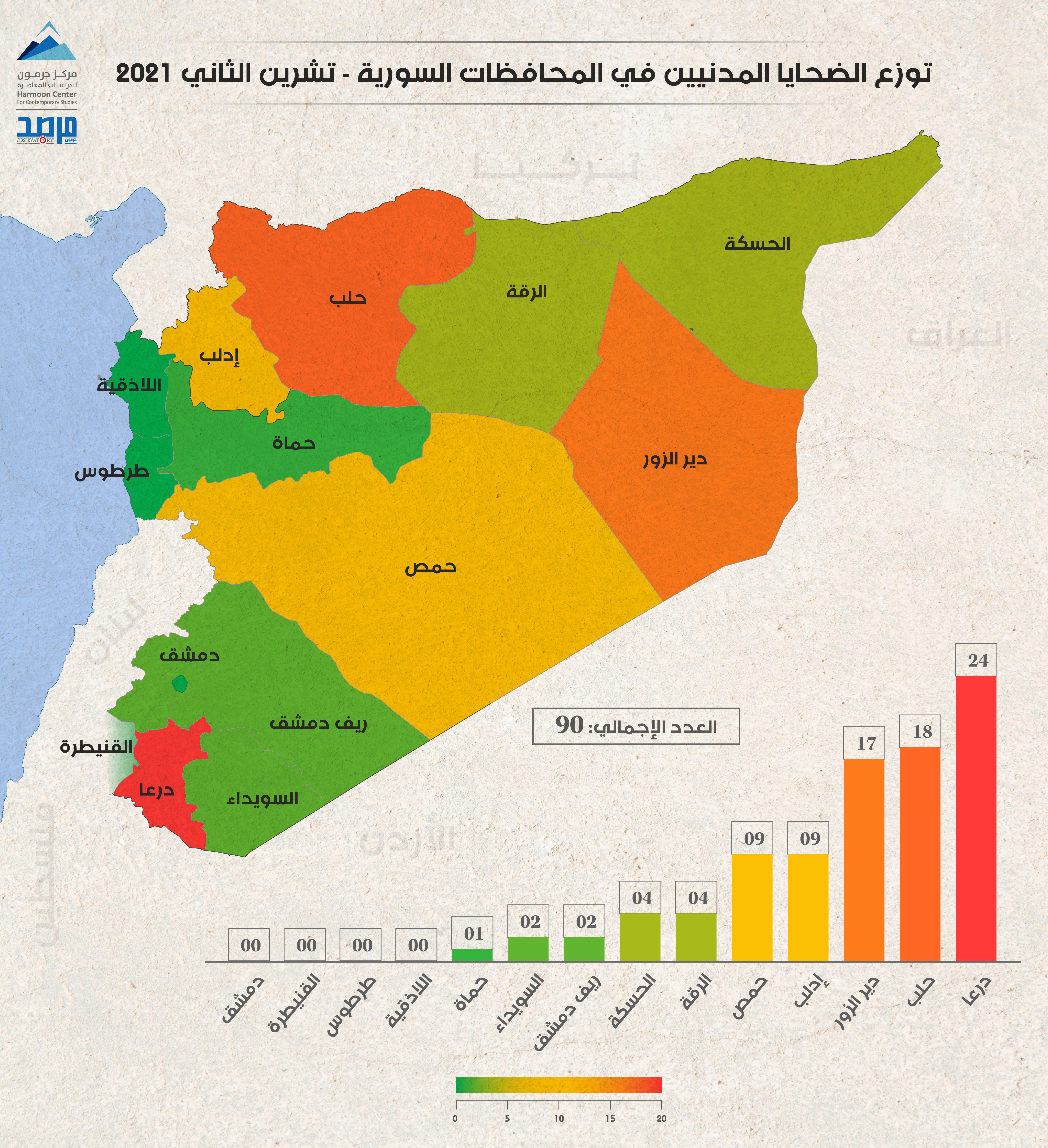 سورية.. توزع الضحايا من المدنيين (تشرين الثاني 2021) نشر في 6 كانون الثاني/يناير ,2022 مشاركة مشاركة مشاركة المقال Facebook Twitter Copy Link Print مشاركة مقالات أخرى للكاتب شرعنة عنف الدولة في سورية أزمة اللاجئين السوريين وتهديدات الأمن العالمي (دراسة حالة ألمانيا) تصعيد أزمة اللاجئين السوريين في لبنان: الدوافع والمآلات اترك تعليقا اترك تعليقاً إلغاء الردلن يتم نشر عنوان بريدك الإلكتروني. الحقول الإلزامية مشار إليها بـ *التعليق * الاسم * البريد الإلكتروني * احفظ اسمي، بريدي الإلكتروني، والموقع الإلكتروني في هذا المتصفح لاستخدامها المرة المقبلة في تعليقي. المقال السابق إبراهيم الجباوي: التركيز على “سلة الدستور” انعطاف خطير في مسيرة وأد الثورة وحرمان الشعب السوري من نيل حريته وكرامته المقال التالي “إيران ودورها الثقافي والاجتماعي التخريبي في سورية والمنطقة” في ندوة لحرمون